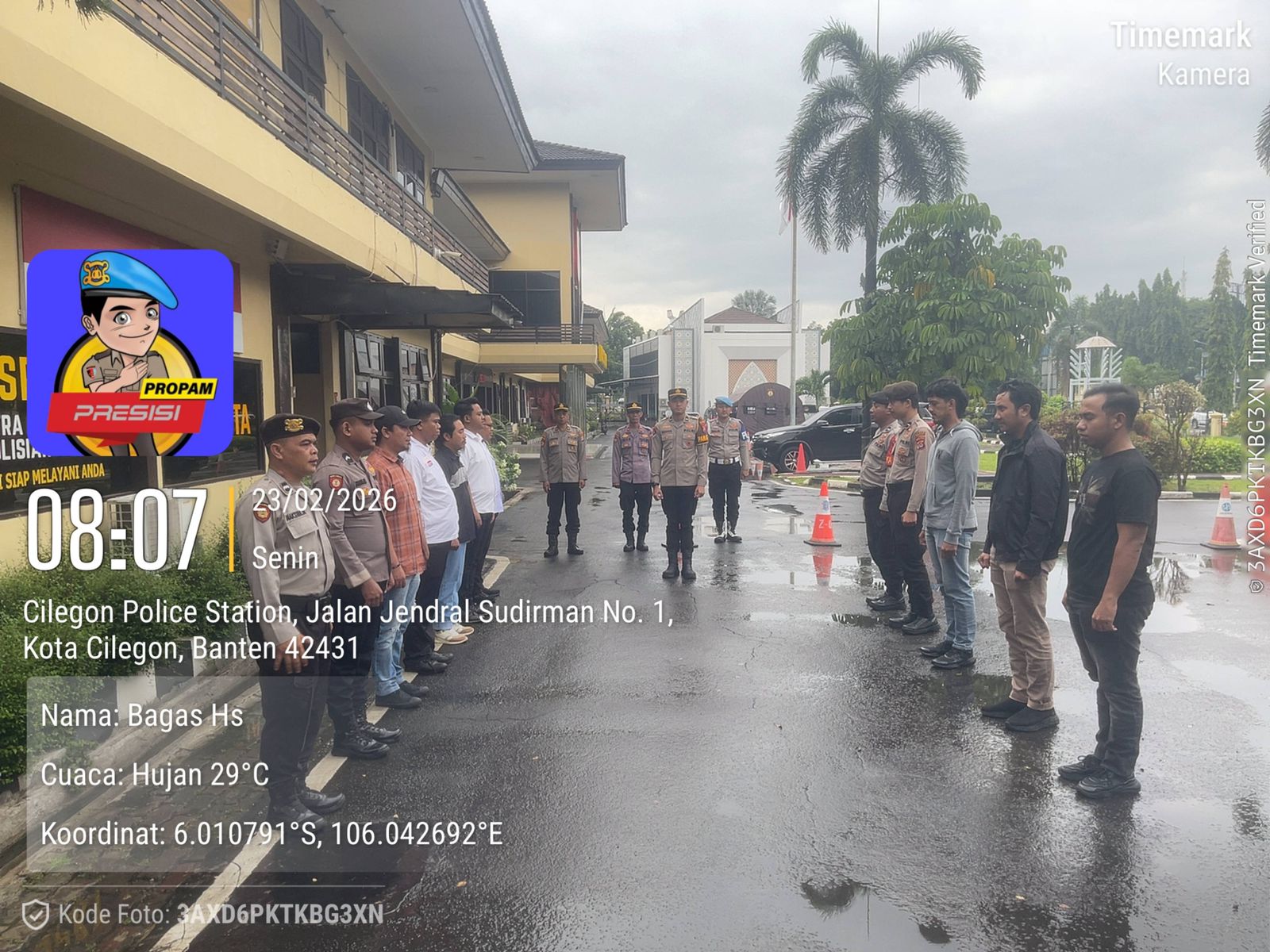 Cilegon, personel Satreskrim Polres Cilegon Polda Banten melaksanakan piket di penjagaan pintu masuk Polres Cilegon Polda Banten untuk memastikan mako Polres Cilegon dalam keadaan aman dan nyaman dalam melayani Masyarakat. Senin (23 /02/2026).