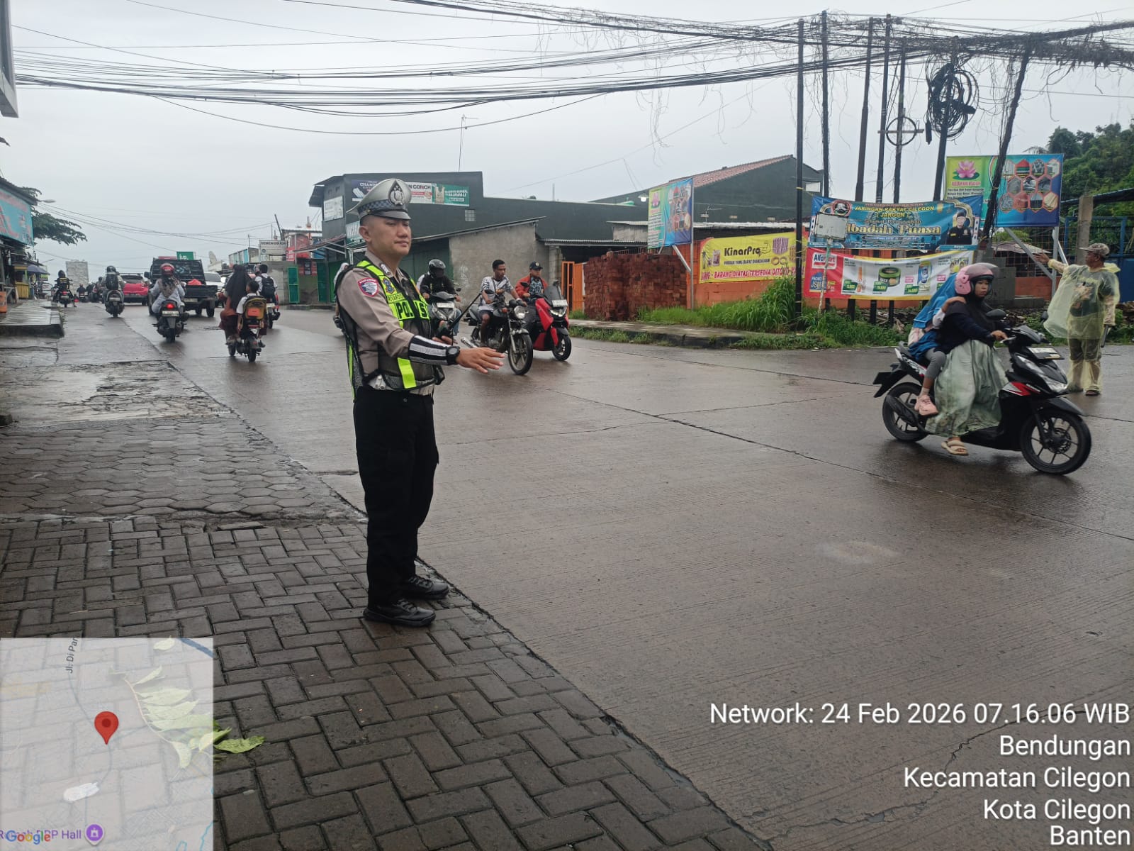 Cilegon, Satlantas Polres Cilegon Polda Banten – Berikan pelayanan kepada masyarakat Kasat lantas Polres Cilegon AKP Ridwan memerintahkan jajaran lalulintas untuk melaksanakan pengaturan lalu lintas di penggal – penggal jalan yang rawan kemacetan di Kota Cilegon, (Selasa,24/2/2026)