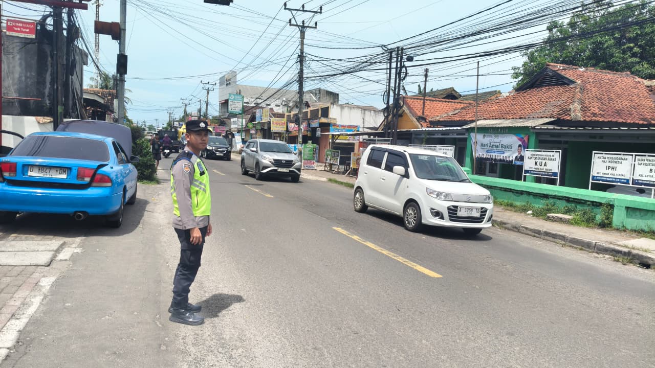 Personel tampak sigap membantu kelancaran arus kendaraan serta memastikan