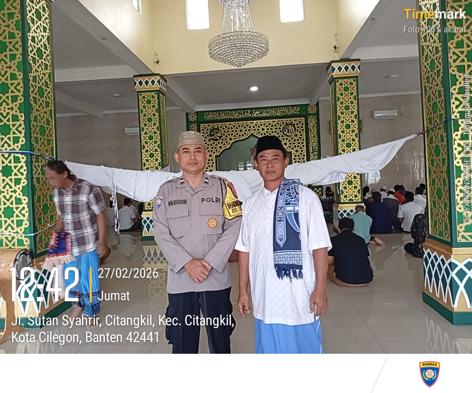 Cilegon - Bhabinkamtibmas Polsek Ciwandan Polres Cilegon Polda Banten Selesai melaksanakan Sholat secara berjama’ah dan Sampaikan Himbauan-himbauan Kamtibmas Kepada Masyarakat Jama'ah Yang ada Dimasjid, Jum'at (27/02/2026).