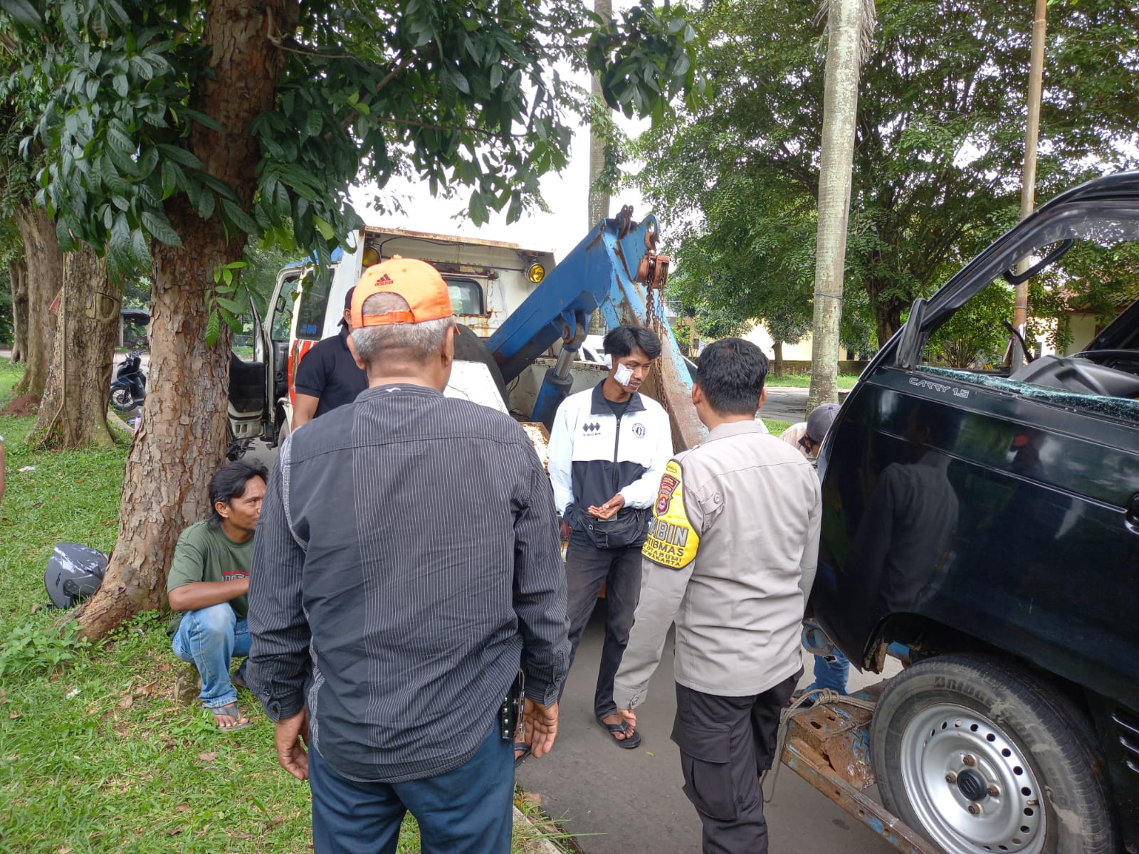 Saat menyapa warga di area sekitar Jalan Utama Perumahan Bukit Palm Hills, Bripka Agustoni melihat sebuah mobil losbak jenis minibus mengalami kendala mesin yang menyebabkan pengemudi kehilangan kendali dan menabrak pohon tepi jalan. Tidak ada korban jiwa dalam insiden ini, namun mobil mengalami kerusakan cukup parah dan memerlukan bantuan derek untuk diangkut ke bengkel.
