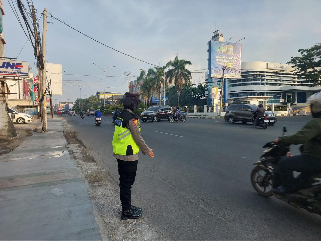 Strong Point Pagi, Personel Polres Cilegon Antisipasi Kemacetan di Simpang Jombang