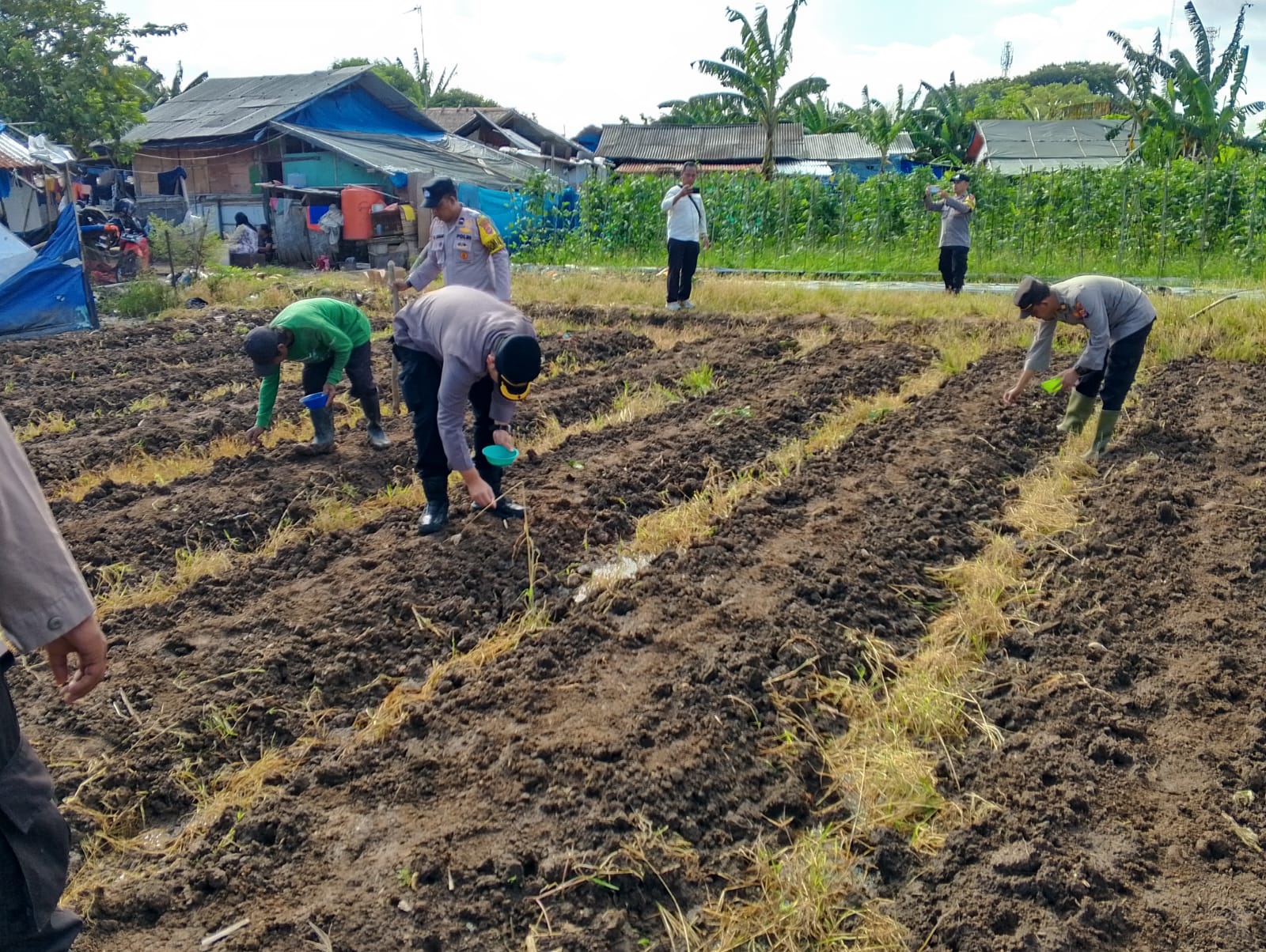 Penanaman jagung hibrida ini dilakukan di lahan seluas 0,5 Ha bersama Kelompok Tani Ketan Emas. Hadir dalam kegiatan ini Kapolsek Ciwandan, Panit 1 Binmas Polsek Ciwandan, Panit Opsnal Intelkam Polsek Ciwandan, dan Anggota Polsek Ciwandan.