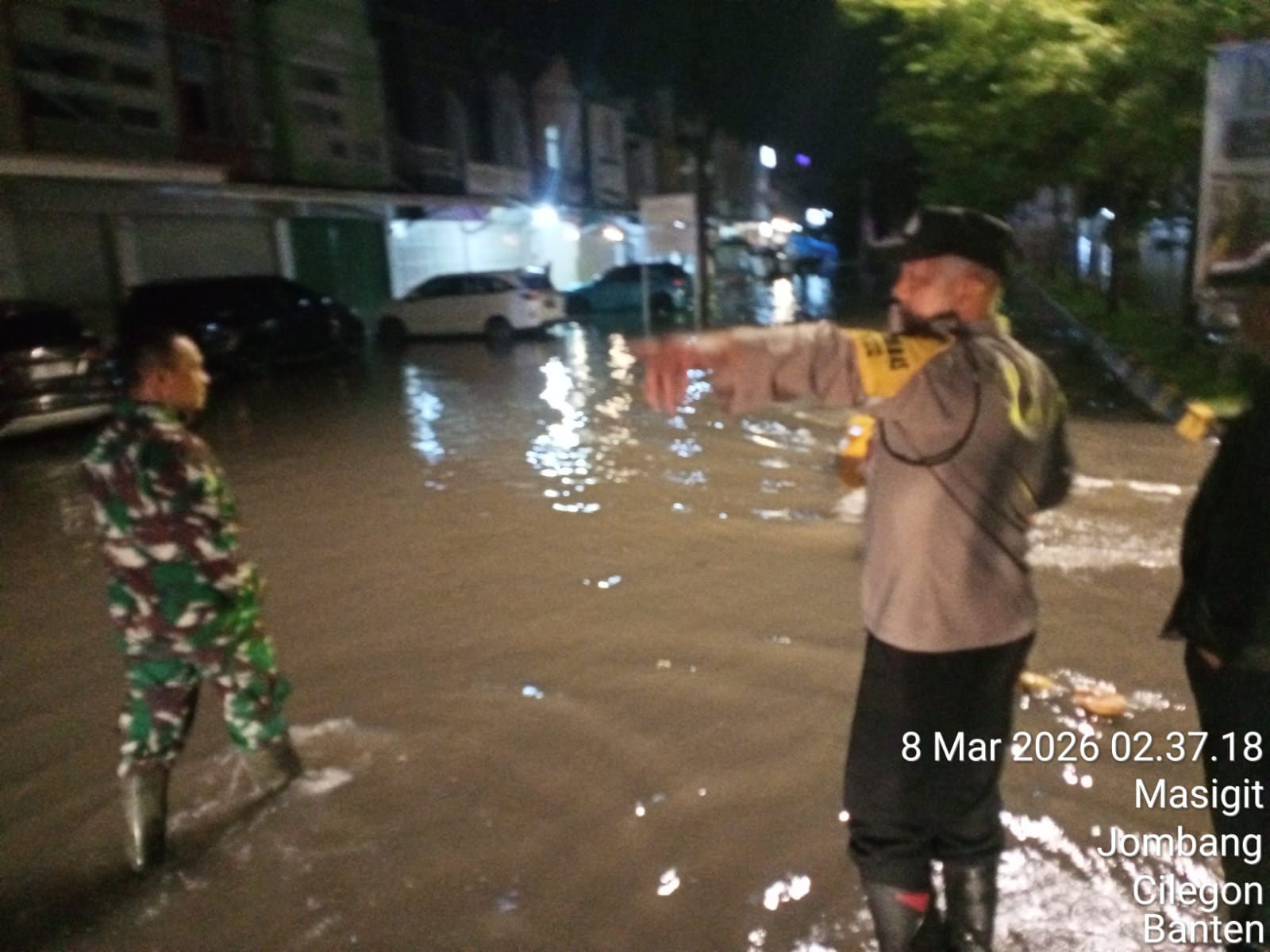 banyak rumah warga yang tergenang dan Polres Cilegon dipimpin oleh Kanit Pamapta