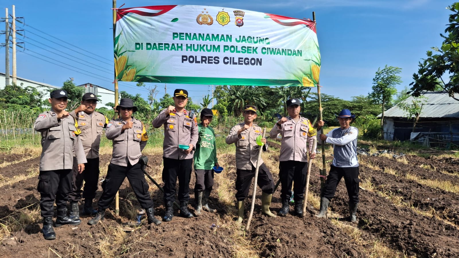 Cilegon - Polsek Ciwandan Polres Cilegon Polda Banten  melaksanakan kegiatan penanaman jagung serentak kuartal 1 tahun 2026 di kawasan KSI Kelurahan Warnasari Kecamatan Citangkil kota Cilegon, Minggu (08/03/2026).