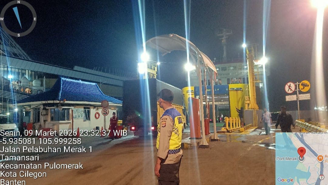 Cilegon - Dalam rangka peningkatan pelayanan prima kepada masyarakat, Kskp Merak Polres Cilegon Polda Banten melaksanakan pengaturan antrian R4 yang akan masuk ke Kapal Ferry di Pelabuhan Merak, Senin (09/03/2026).