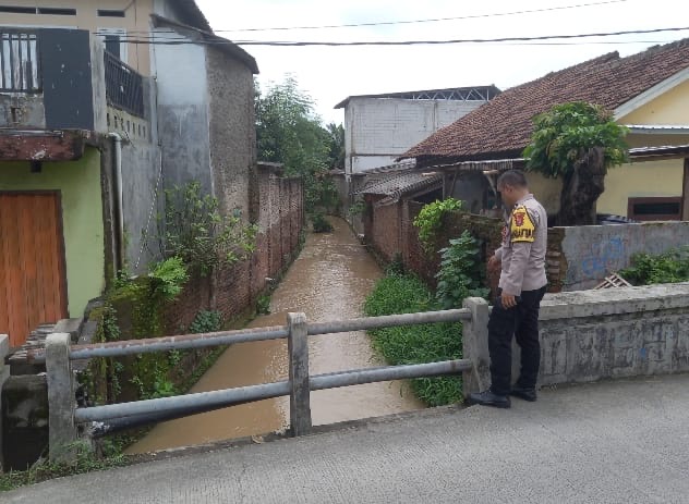 Personil Polsek Purwakarta Lakukan Monitoring Saluran Drainase