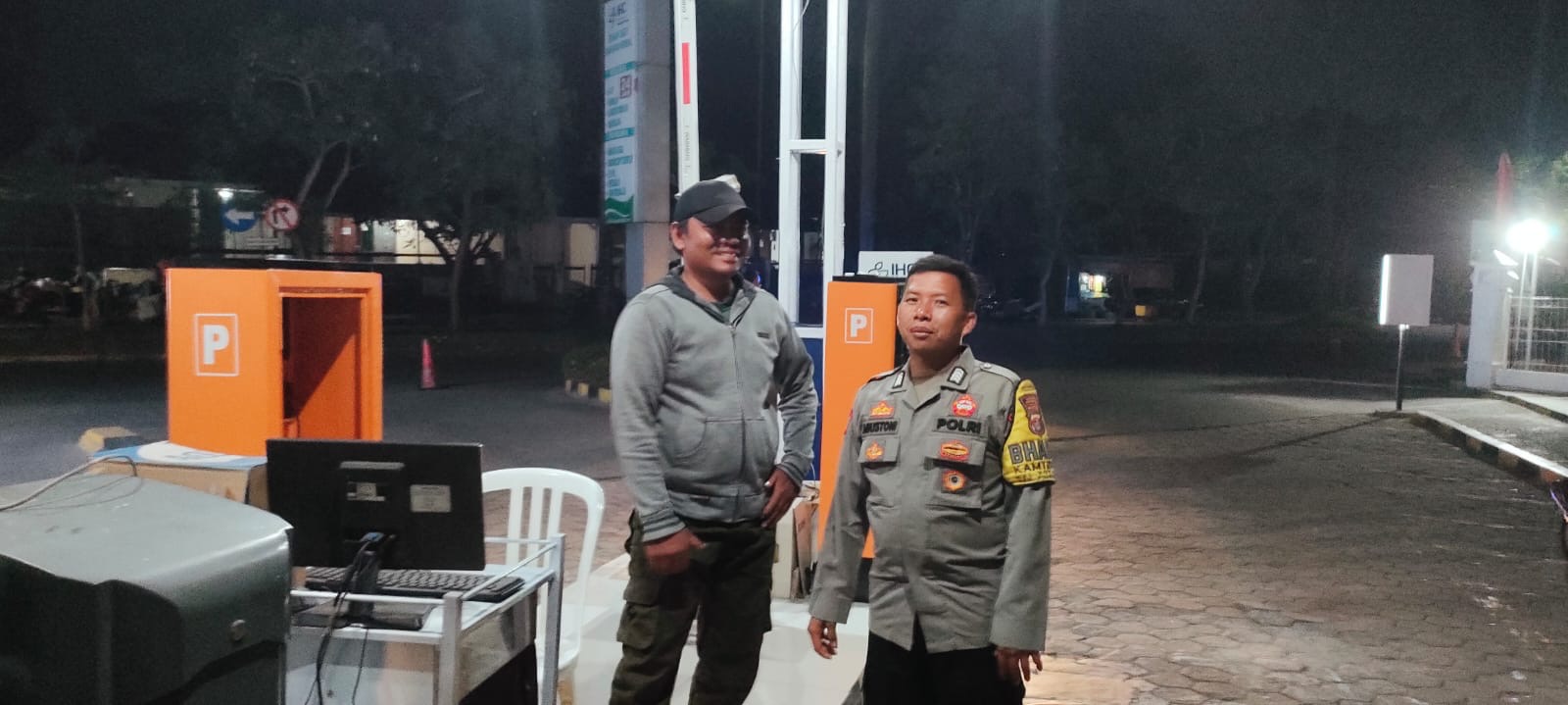 Personil Bhabinkamtibmas Menyapa Petugas Jaga Tiket Parkir RSKM IHC ,Sampaikan Himbauan Kamtibmas