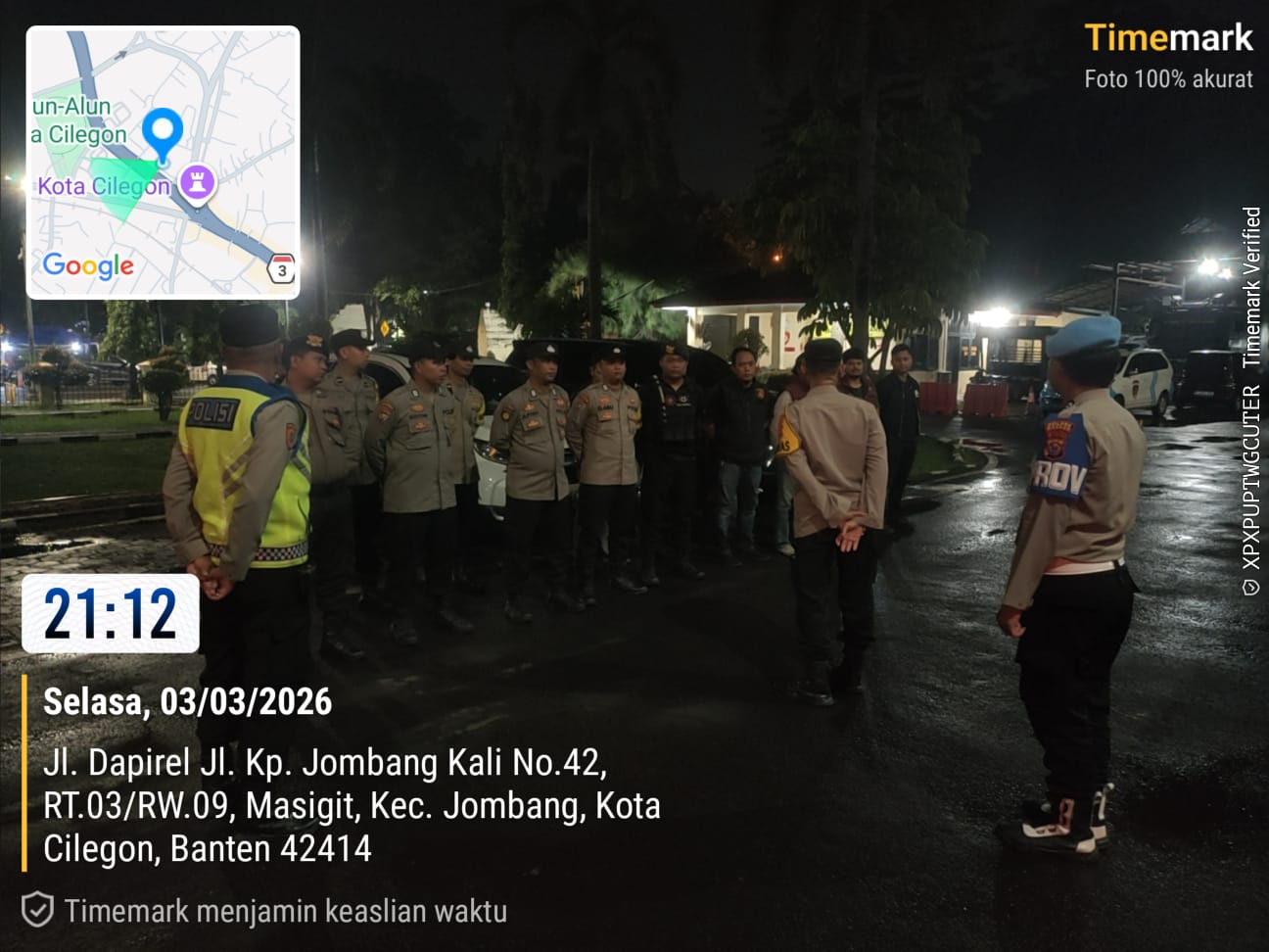 Polres Cilegon melaksanakan patroli malam sebagai upaya menjaga keamanan dan ketertiban masyarakat. Kegiatan ini dilakukan secara rutin dengan menyasar titik-titik rawan kriminalitas, pusat keramaian, serta kawasan pemukiman warga. Dalam pelaksanaannya, petugas berkeliling menggunakan kendaraan dinas sambil memantau situasi dan berinteraksi langsung dengan masyarakat.