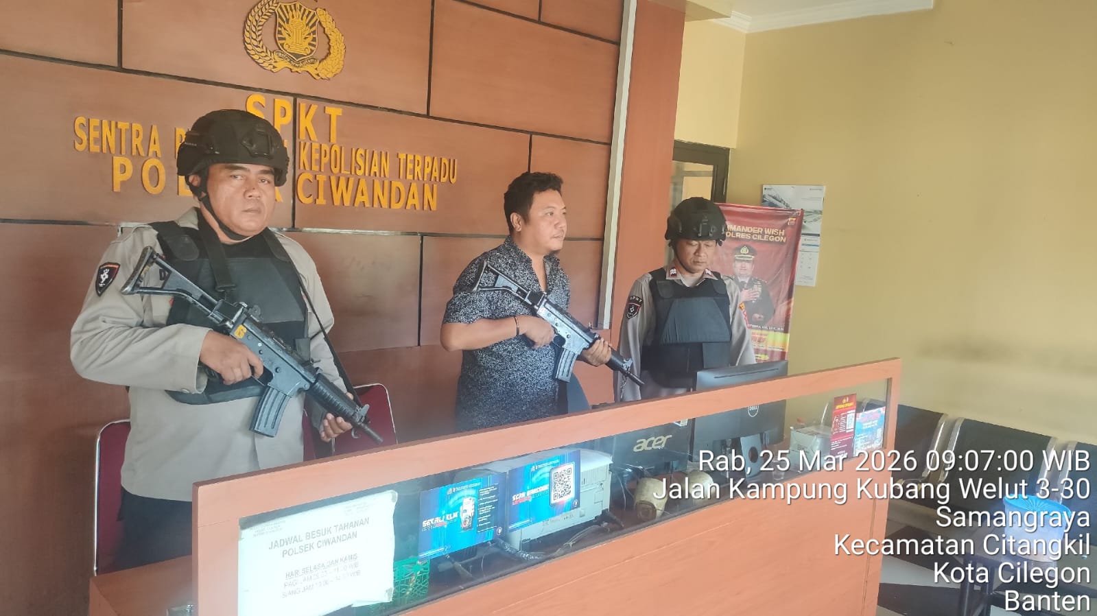 Cilegon - Dalam Kesiap Siagaan dan Memperketat Penjagaan Mako (Markas Komando), Personil Polsek Ciwandan Polres Cilegon Polda Banten melaksanakan Sistem Pengamanan Markas Komando (Sispam Mako), Rabu (25/03/2026).