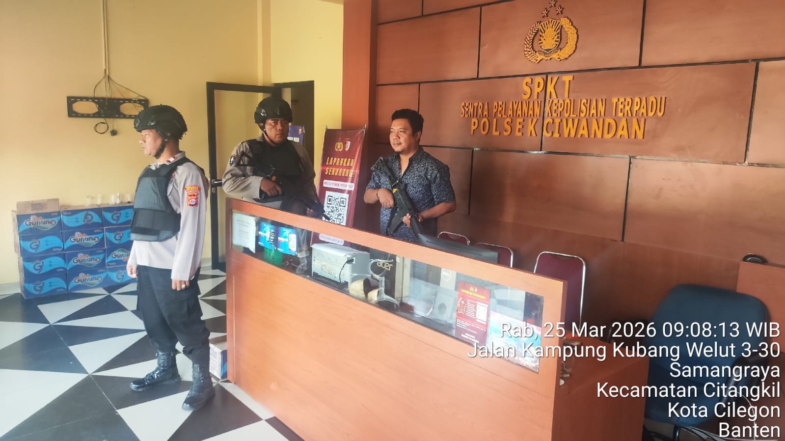 Cilegon - Dalam Kesiap Siagaan dan Memperketat Penjagaan Mako (Markas Komando), Personil Polsek Ciwandan Polres Cilegon Polda Banten melaksanakan Sistem Pengamanan Markas Komando (Sispam Mako), Rabu (25/03/2026).