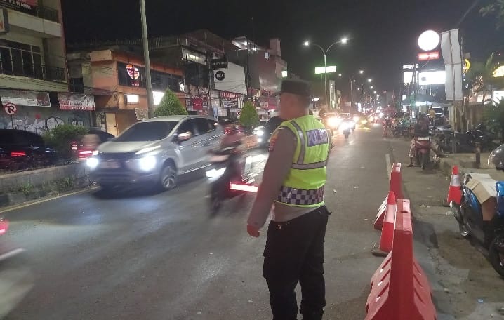 Antisipasi Arus Balik Mudik Lebaran, Personil Pos Pam 3 Landmark Pengaturan Lalu Lintas Malam Hari