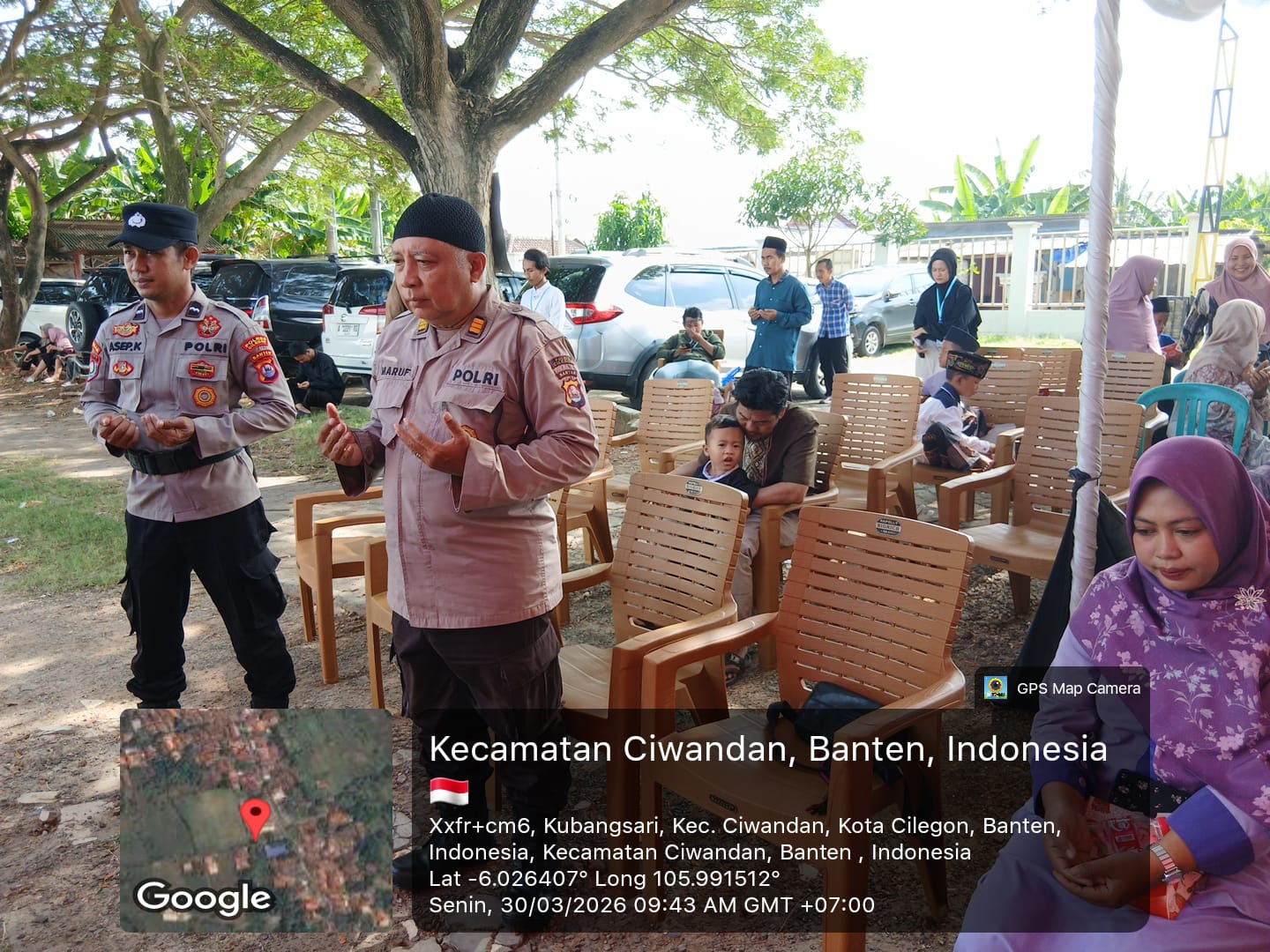 Kegiatan ini dihadiri oleh Camat Ciwandan,Wakapolsek Ciwandan, AKP Uup M. Maruf, Lurah Kubangsari,Bhabinkamtibmas Kelurahan Kubangsari dan tokoh agama setempat.