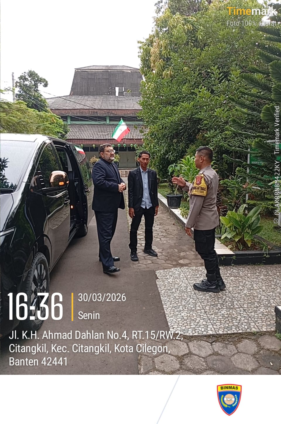 Cilegon -  Bhabinkamtibmas Kelurahan Citangkil Polsek Ciwandan Polres Cilegon Polda Banten AIPDA Warudin, menghadiri kegiatan Halal Bihalal PB Alkhairiyah bersama Duta Besar Republik Islam Iran, MUMAMMAD BOROUJERDI, dan tim di Aula PB Alkhairiyah, Citangkil, Senin (30/03/2026).