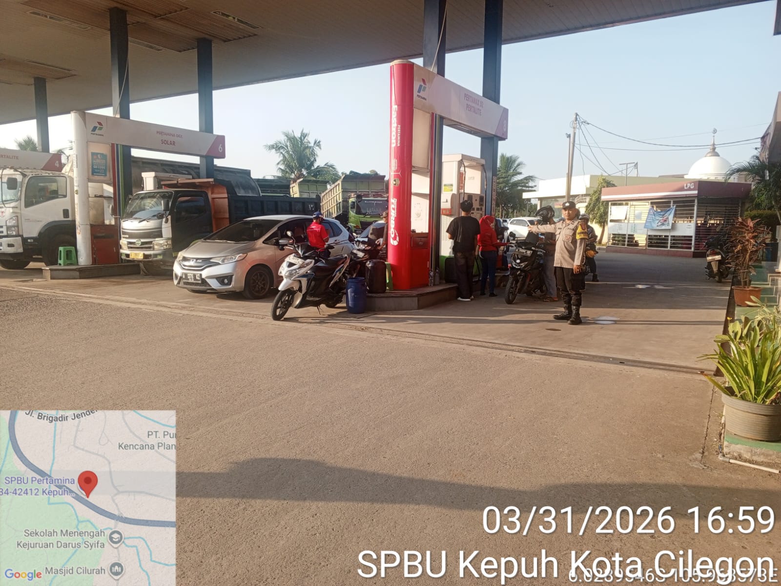 Personil Polsek Ciwandan, melakukan pengecekan di SPBU Krenceng,SPBU Cigading Dan SPBU Kepuh, stok BBM di ketiga SPBU tersebut relatif aman, namun ada beberapa jenis BBM yang sedang kosong dan akan segera diisi.