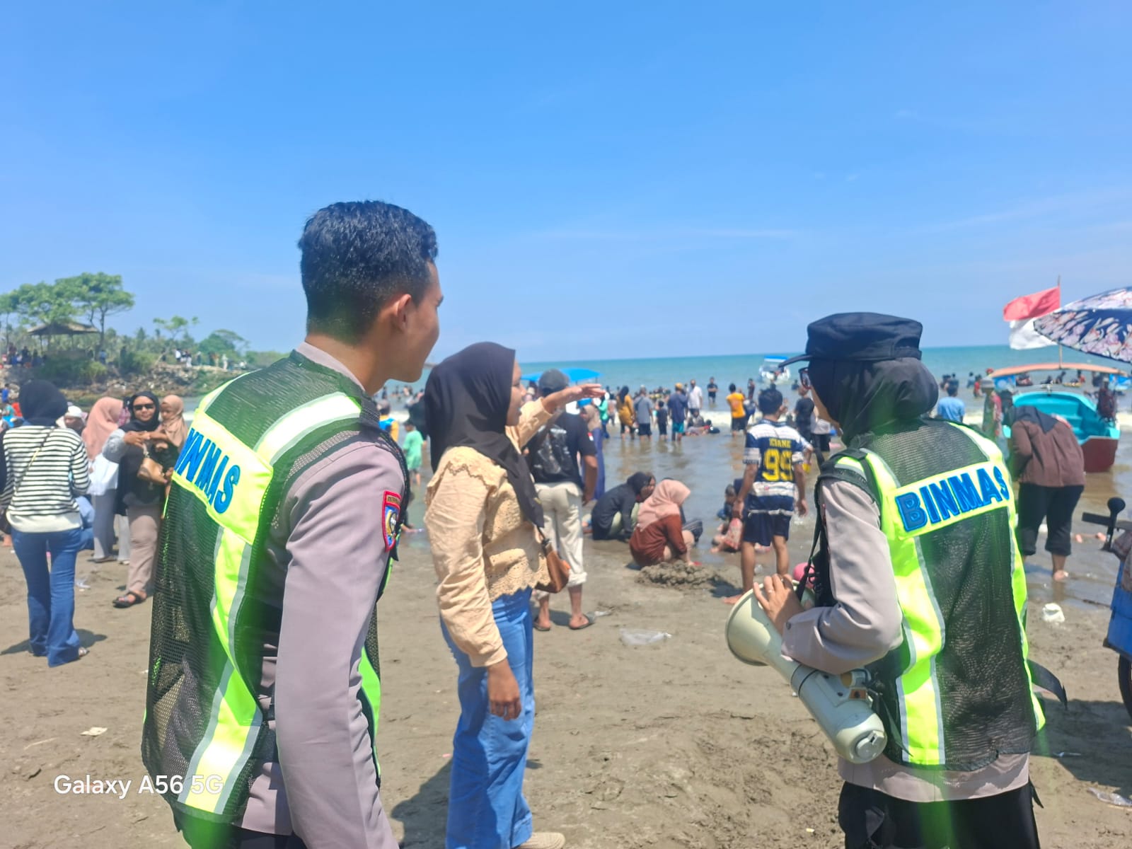 ANGGOTA POLSEK ANYER MELAKUKAN KEGIATAN HIMBAUAN TERHADA WISATWAN