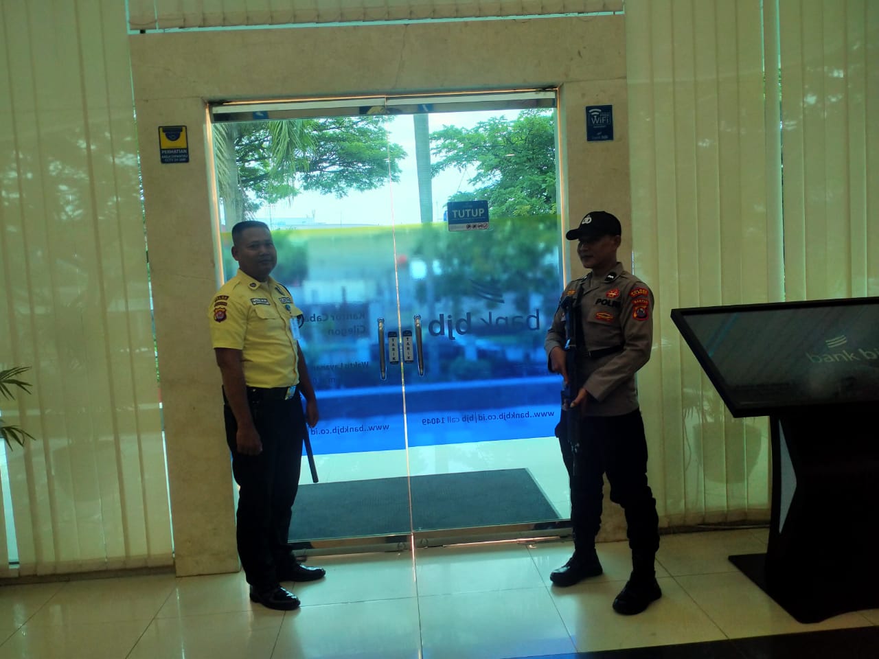 Pastikan kemanan dan kenyamanan nasabah, Satpamobvit Polres Cilegon hadir amankan Bank.