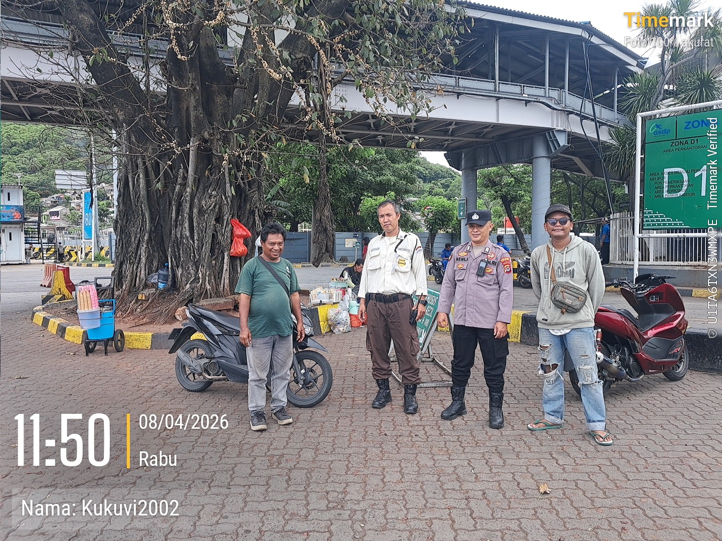 Cilegon - Personel Polsek Kskp Merak Polres Cilegon Polda Banten melaksanakan sambang dan patroli kawasan pelabuhan merak dalam rangka menjaga Harkamtibmas di Kawasan Pelabuhan Merak, Rabu (08/04/2026).