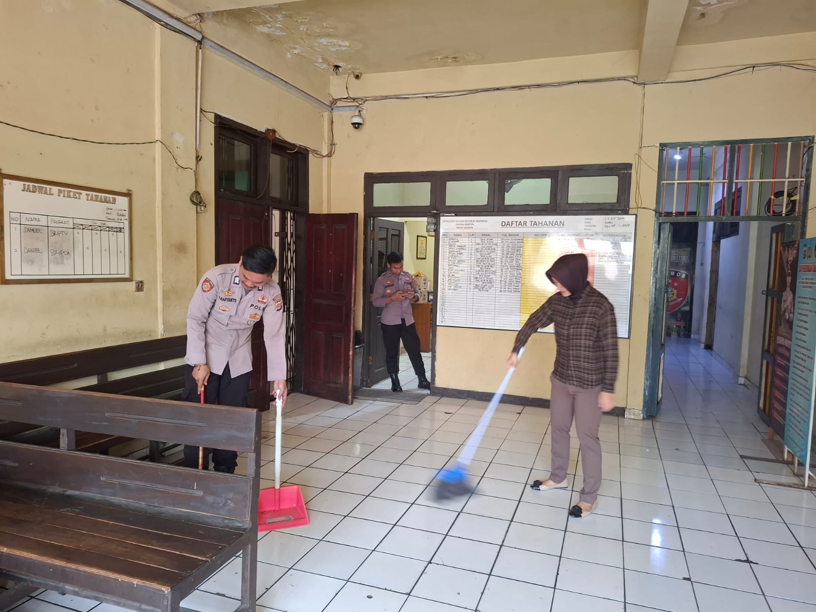 Cilegon, Polres Cilegon Polda Banten. Pada Hari Rabu 15 April  2026 Di Rutan polres cilegon anggota SatTahti melaksanakan giat korve di area rutin Polres cilegon.