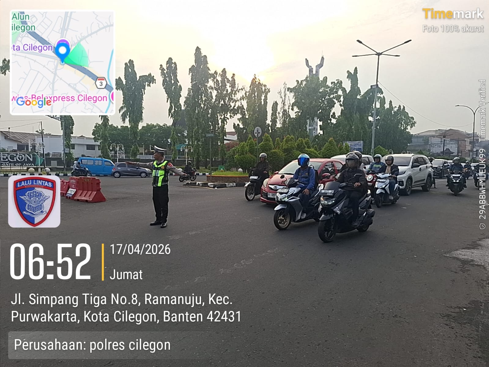 Cilegon, Satlantas Polres Cilegon Polda Banten – Berikan pelayanan kepada masyarakat Kasat lantas Polres Cilegon AKP Ridwan memerintahkan jajaran lalulintas untuk melaksanakan pengaturan lalu lintas di penggal – penggal jalan yang rawan kemacetan di Kota Cilegon, (Jumat,17/4/2026)Dalam giat Pengaturan Lalu lintas di Pagi hari ini bertujuan agar terciptanya Kamseltibcar Lantas dan mengantisipasi terjadinya Laka...
