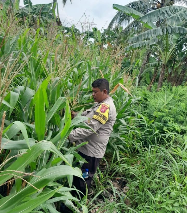 Dukung Ketahanan Pangan, Bhabinkamtibmas Lakukan Monitoring Lahan Jagung Warga