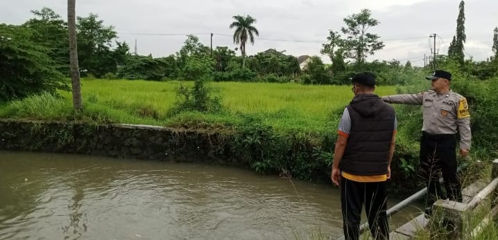 Antisipasi Banjir, Anggota Polsek Purwakarta Monitoring Saluran Air