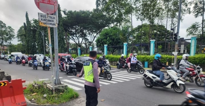 Strong Poin Pagi, Ipda Gana Kanit Samapta dan Bhabinkamtibmas Laksanakan Gatur lalu lintas Di Simpang Jalan Raya Wadas Bojonegara