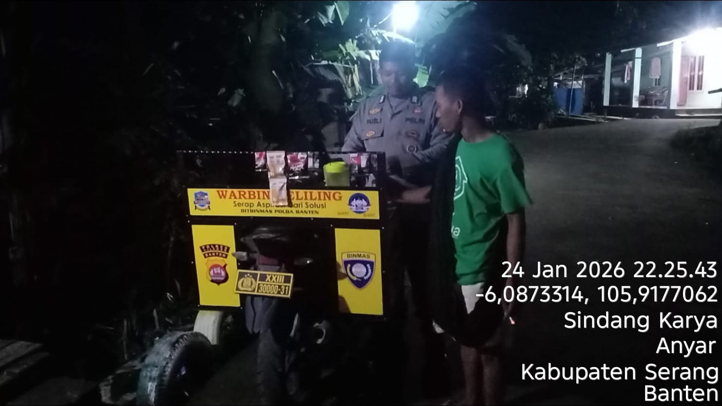 Kapolsek Ciwandan dan Bhabinkamtibmas Ciwandan melaksanakan kegiatan patroli untuk menjaga situasi kamtibmas yang aman dan kondusif. Kegiatan patroli ini dilakukan untuk ¹:- Mengantisipasi terjadinya aksi kejahatan: Dengan adanya patroli, masyarakat merasa lebih aman dan nyaman.- Memberikan pelayanan dan pengayoman kepada masyarakat: Bhabinkamtibmas Polsek Ciwandan secara aktif melakukan patroli dialogis dan memberikan pesan-pesan kamtibmas kepada warga.- Mencegah gangguan kamtibmas: Patroli...
