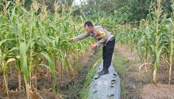 DUKUNG KETAHANAN PANGAN, BHABINKAMTIBMAS KEL. KEBONDALEM MONITORING TANAMAN JAGUNG DIWILAYAH BINAAN