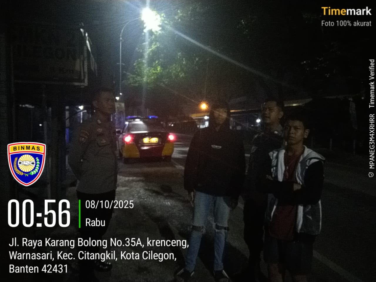 Cilegon - Personil Polsek Ciwandan Polres Cilegon Polda Banten memberikan himbauan kamtibmas dan motivasi kepada anak-anak Remaja Yang sedang Nongkrong Dipinggir Jalan Lingkungan Binaan, Rabu (08/10/2025).