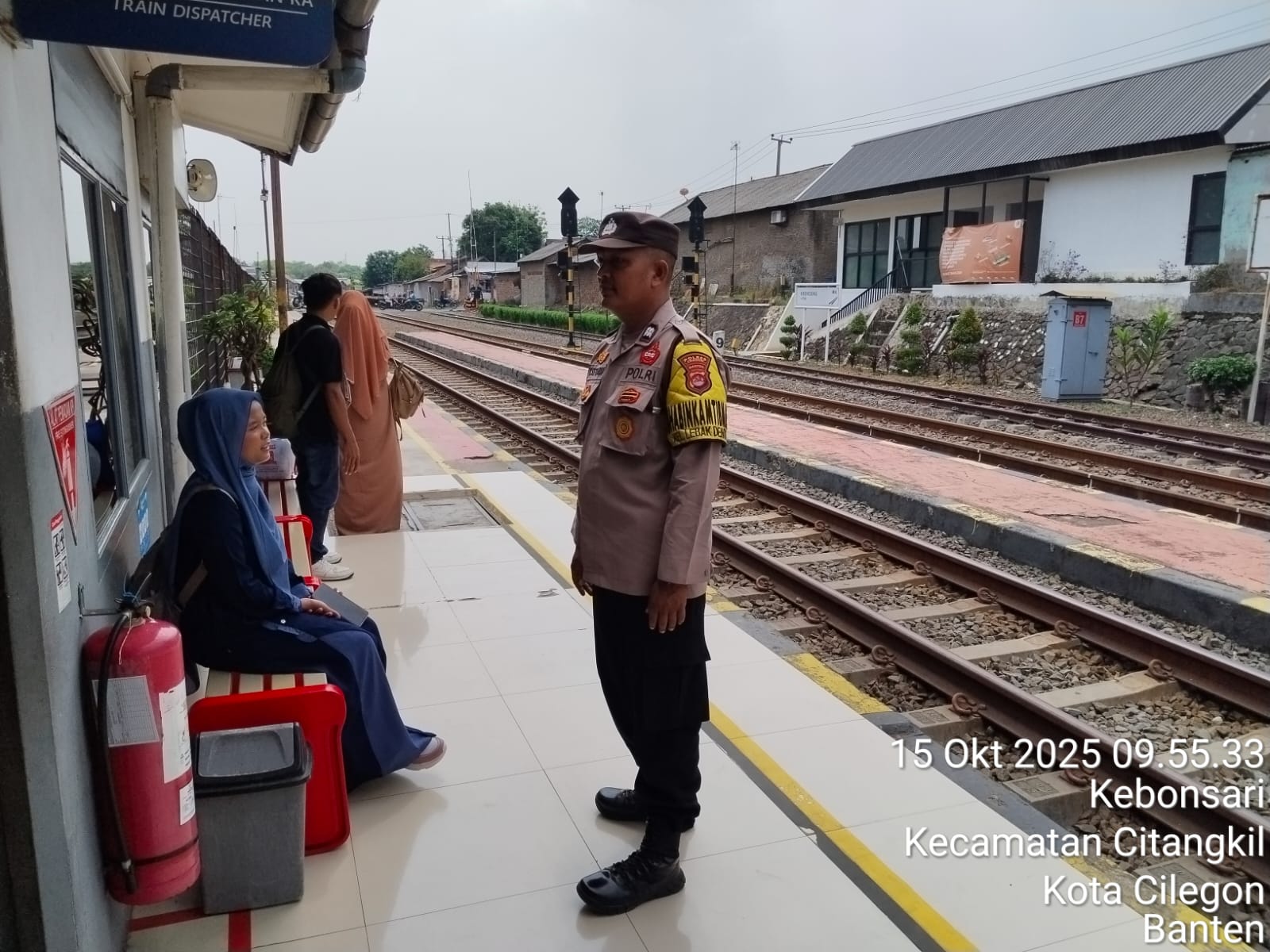 Personil Polsek Ciwandan Sambangi Masyarakat Calon Penumpang Kereta