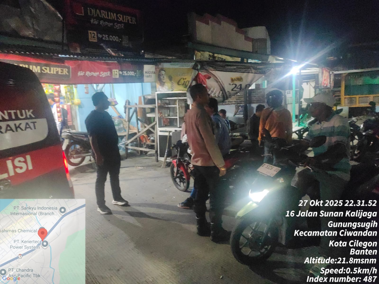 Cilegon - Personil Polsek Ciwandan Polres Cilegon Polda Banten Selalu Melaksanaan Kegiatan KRYD (Kegiatan Rutin Yang Ditingkatkan) Patroli Rutin malam hari di daerah hukum Polsek Ciwandan Guna Persempit Ruang Pelaku Tindak Kejahatan, Selasa (28/10/2025).