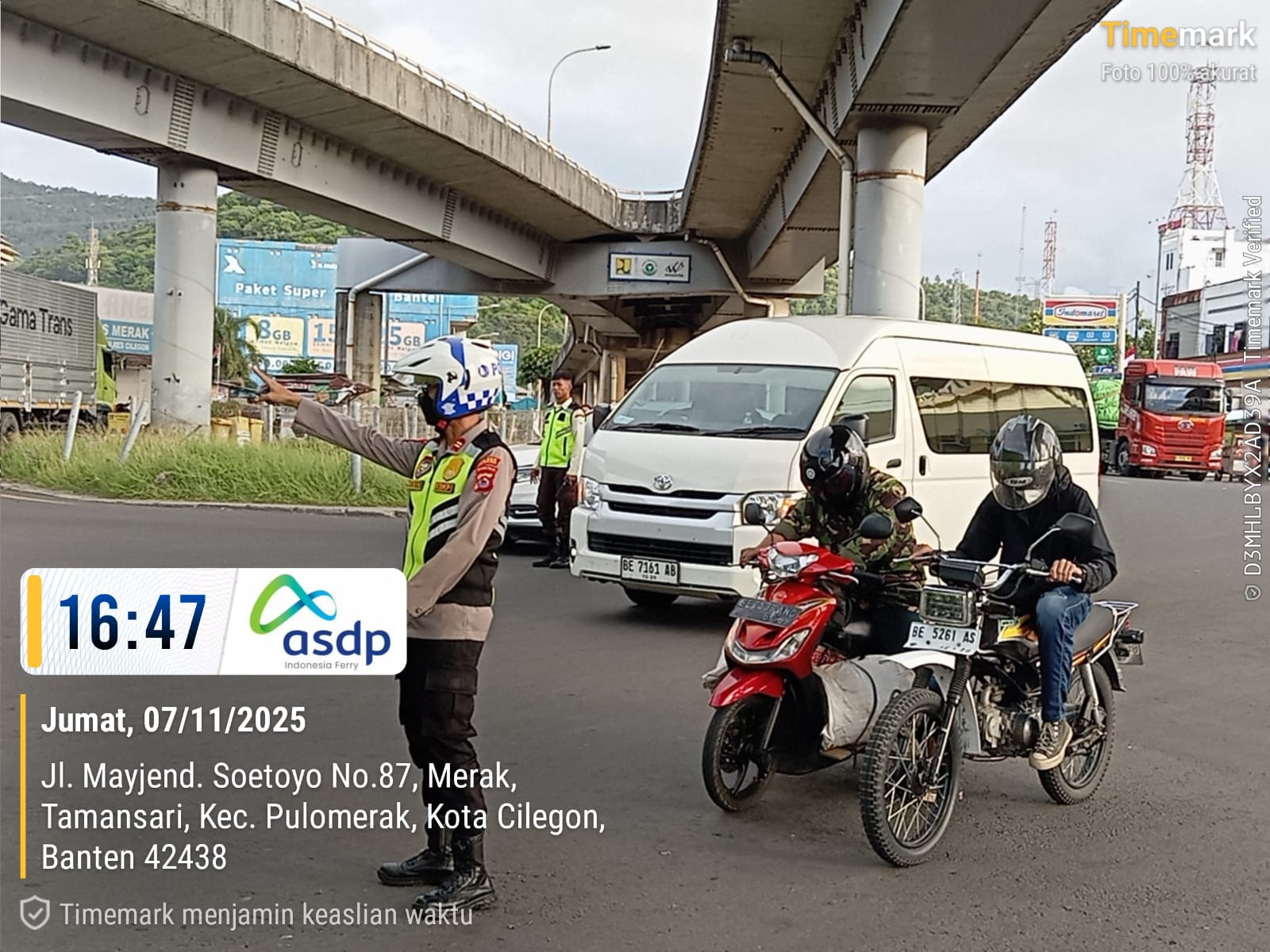 Kegiatan ini adalah salah satu wujud dari kesiapan kami sebagai Anggota Polri untuk memperlancar para pengguna jasa yang akan naik ke kapal ferry dengan tujuan Merak-Bakauheni.