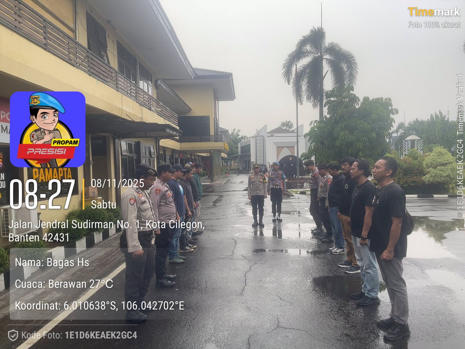 Cilegon, personel Satreskrim Polres Cilegon Polda Banten melaksanakan piket di penjagaan pintu masuk Polres Cilegon Polda Banten untuk memastikan mako Polres Cilegon dalam keadaan aman dan nyaman dalam melayani Masyarakat tanpa adanya gangguan kejahatan. Sabtu (08/11/2025).