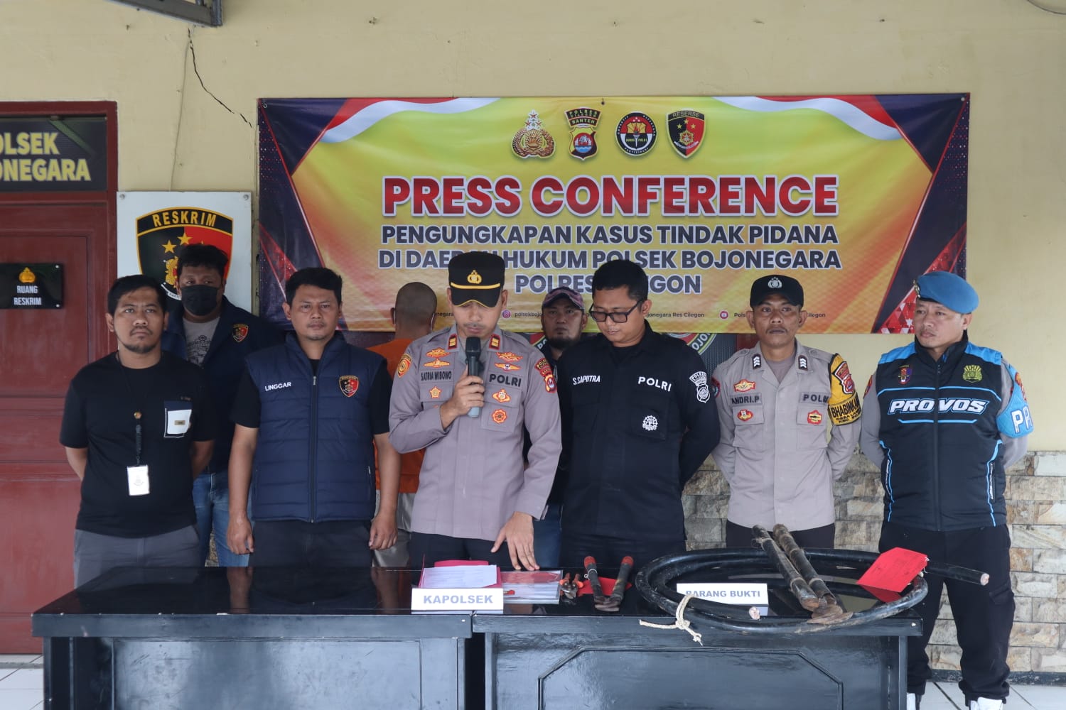 Keberhasilan pengungkapan kasus tersebut disampaikan langsung oleh Kapolsek Bojonegara, IPTU Muhammad Lazim Satria Wibowo, S.Tr.K., dalam kegiatan press conference yang digelar di Aula Polsek Bojonegara, Senin (10/11/2025).