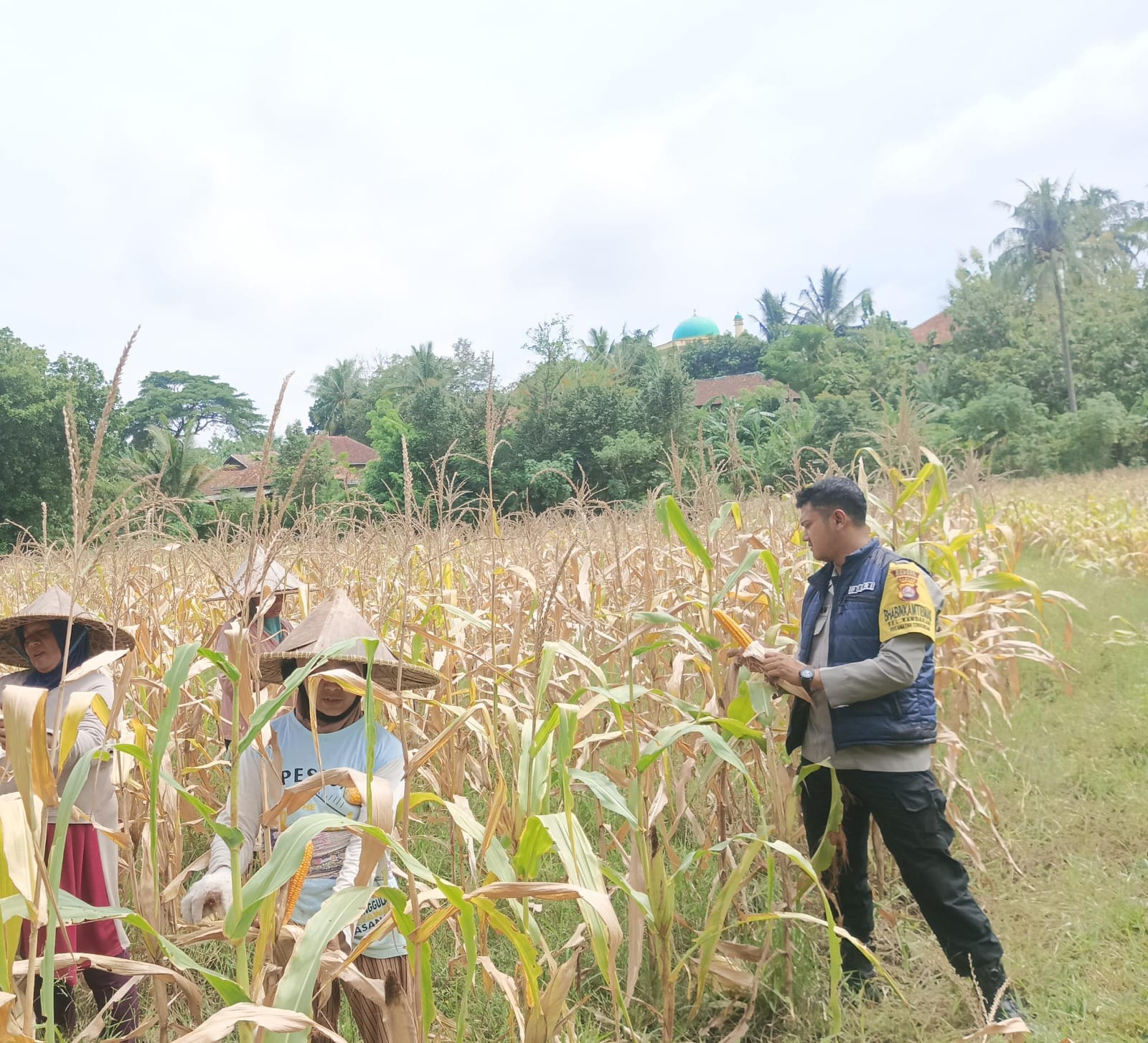 Cilegon -  Bhabinkamtibmas Polsek Ciwandan menghadiri Panen Jagung yang diselenggarakan oleh kelompok tani Pekalongan Lingkungan Kelurahan Randakari Kecamatan Ciwandan Kegiatan panen raya ini merupakan hasil kerja keras petani lokal dalam meningkatkan produksi pertanian di daerah tersebut, Selasa (18/11/2025).