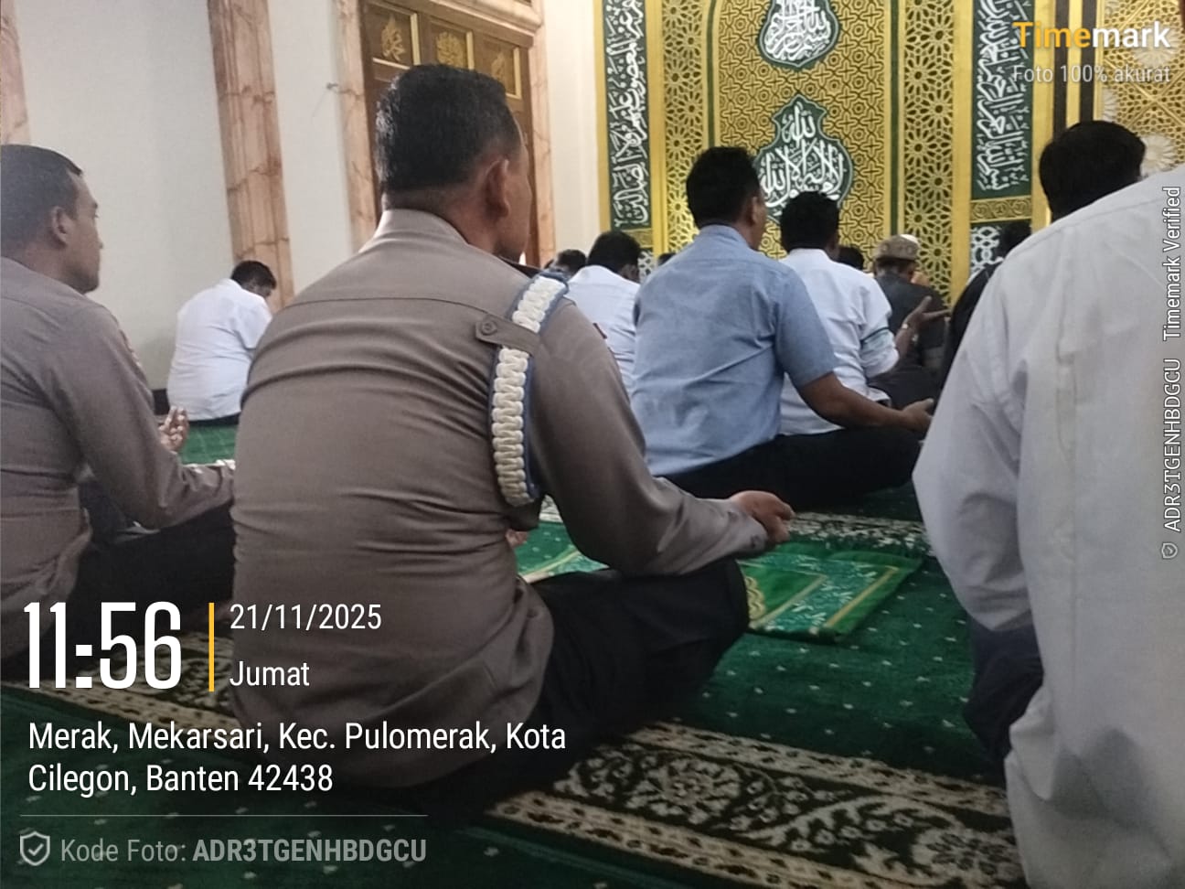 Cilegon – Personil Kskp Merak Polres Cilegon Polda Banten menggelar kegiatan Pembinaan Rohani dengan shalat Jumat keliling di Masjid Yang ada Di Daerah hukum Polsek Kp Merak Polres Cilegon Polda Banten, Jumat (21/11/2025).