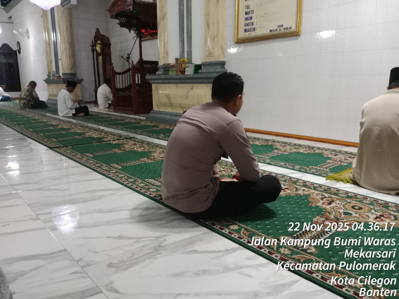 Cilegon – Personil Kskp Merak Polres Cilegon Polda Banten menggelar kegiatan Pembinaan Rohani dengan shalat subuh keliling di Masjid Yang ada Di Daerah hukum Polsek Kp Merak Polres Cilegon Polda Banten, Sabtu (22/11/2025).