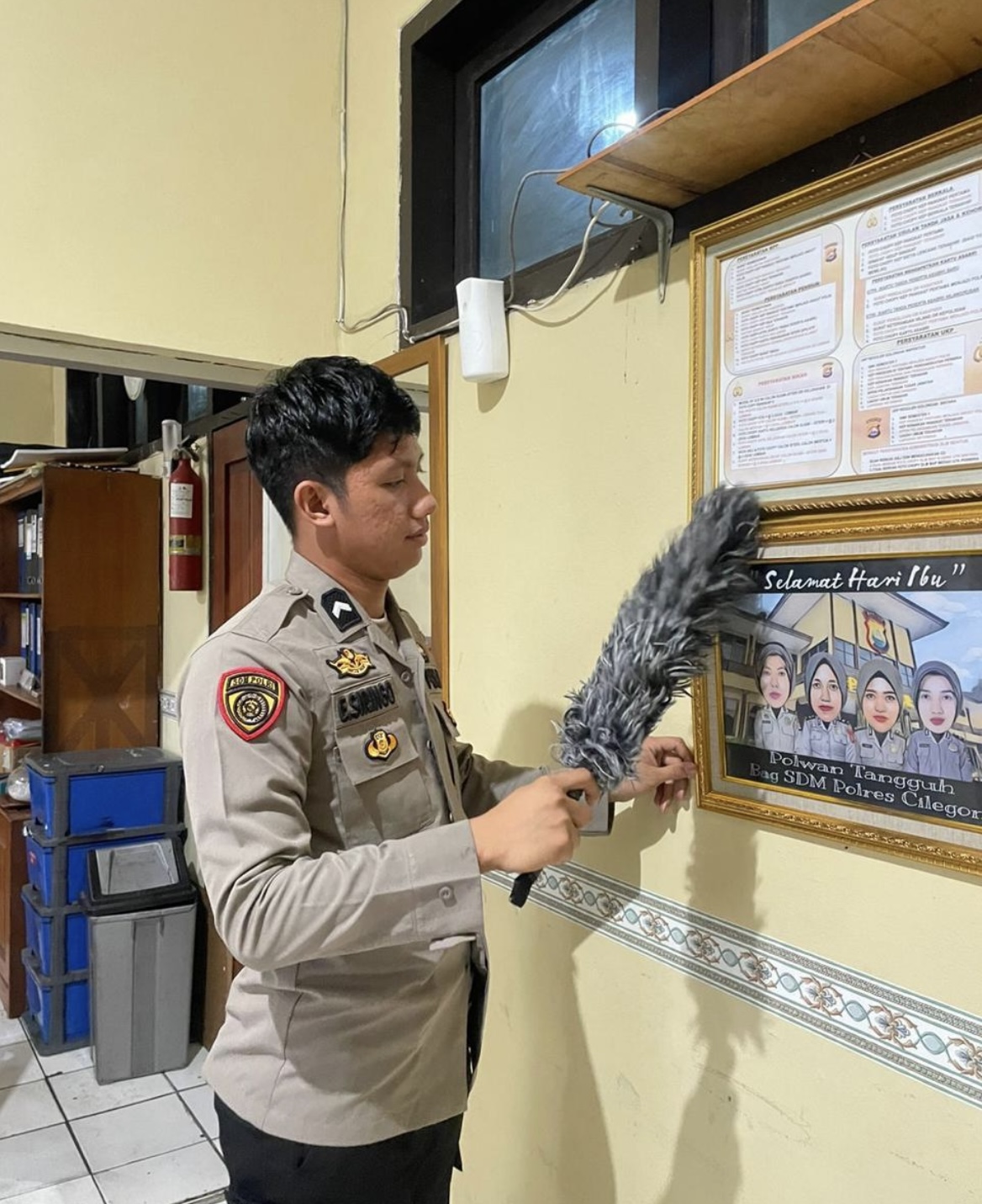 Anggota Bag SDM Polres Cilegon, Aktiff dalam rutinitas membersihkan ruangan kerja setiap hari