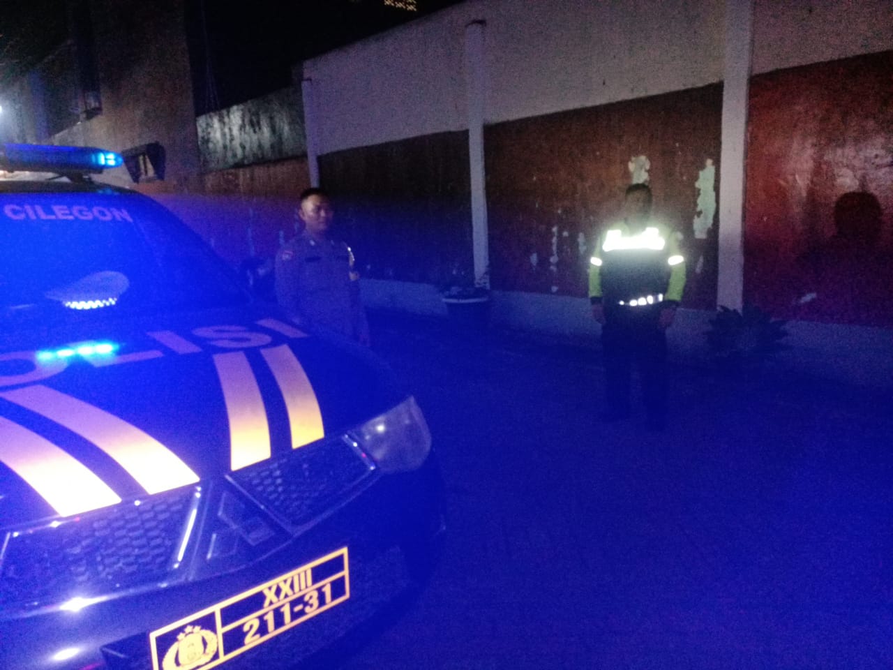 Anggota patroli samapta Polsek Cilegon laksanakan Blue light patrol antisipasi kejahatan malam hari jaga keamanan di wilayah hukumnya