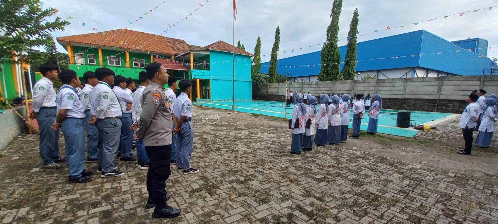 Cilegon – Bhabinkamtibmas Polsek Ciwandan Dampingi Kasat Binmas Polres Cilegon Polda Banten IPTU Muhyidin Pimpin Upacara Dan Menyambangi MTS & MA Dikelurahan Tegalratu Kecamatan Ciwandan, Menyampaikan Pesan-pesan Kamtibmas Dan Memberikan Imbauan, Senin (24/11/2025).
