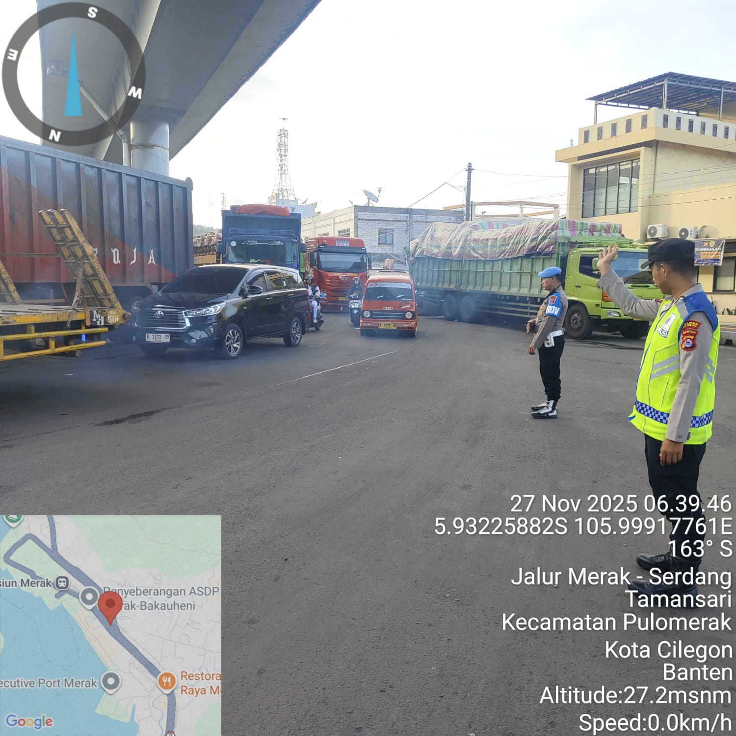 Cilegon - Dalam rangka peningkatan pelayanan prima kepada masyarakat, Kskp Merak Polres Cilegon Polda Banten melaksanakan pengaturan antrian R4 yang akan masuk ke Kapal Ferry di Pelabuhan Merak, Kamis (27/11/2025).