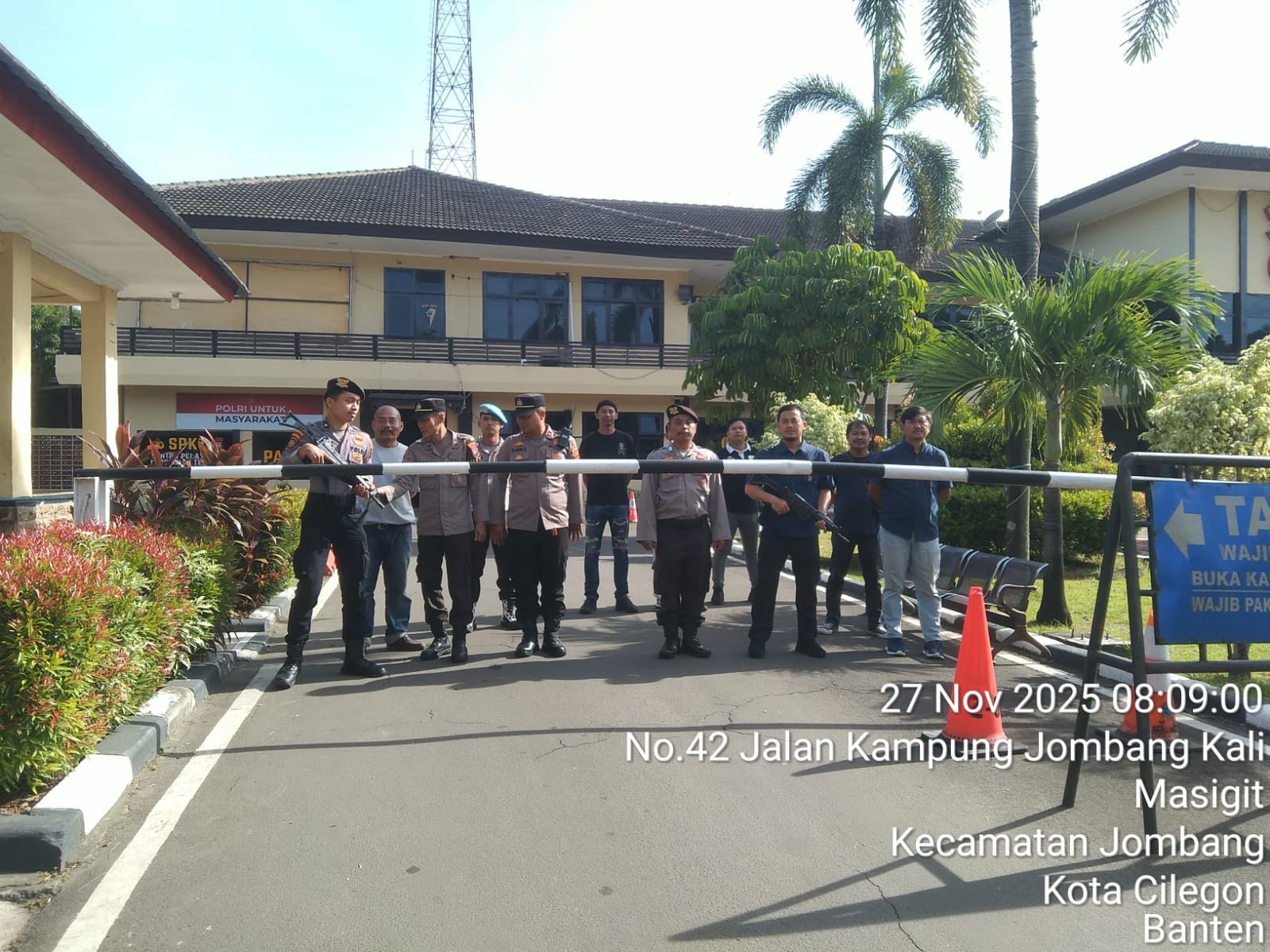 Cilegon, personel Satreskrim Polres Cilegon Polda Banten melaksanakan piket di penjagaan pintu masuk Polres Cilegon Polda Banten untuk memastikan mako Polres Cilegon dalam keadaan aman dan nyaman dalam melayani Masyarakat tanpa adanya gangguan kejahatan. Kamis (27/11/2025).