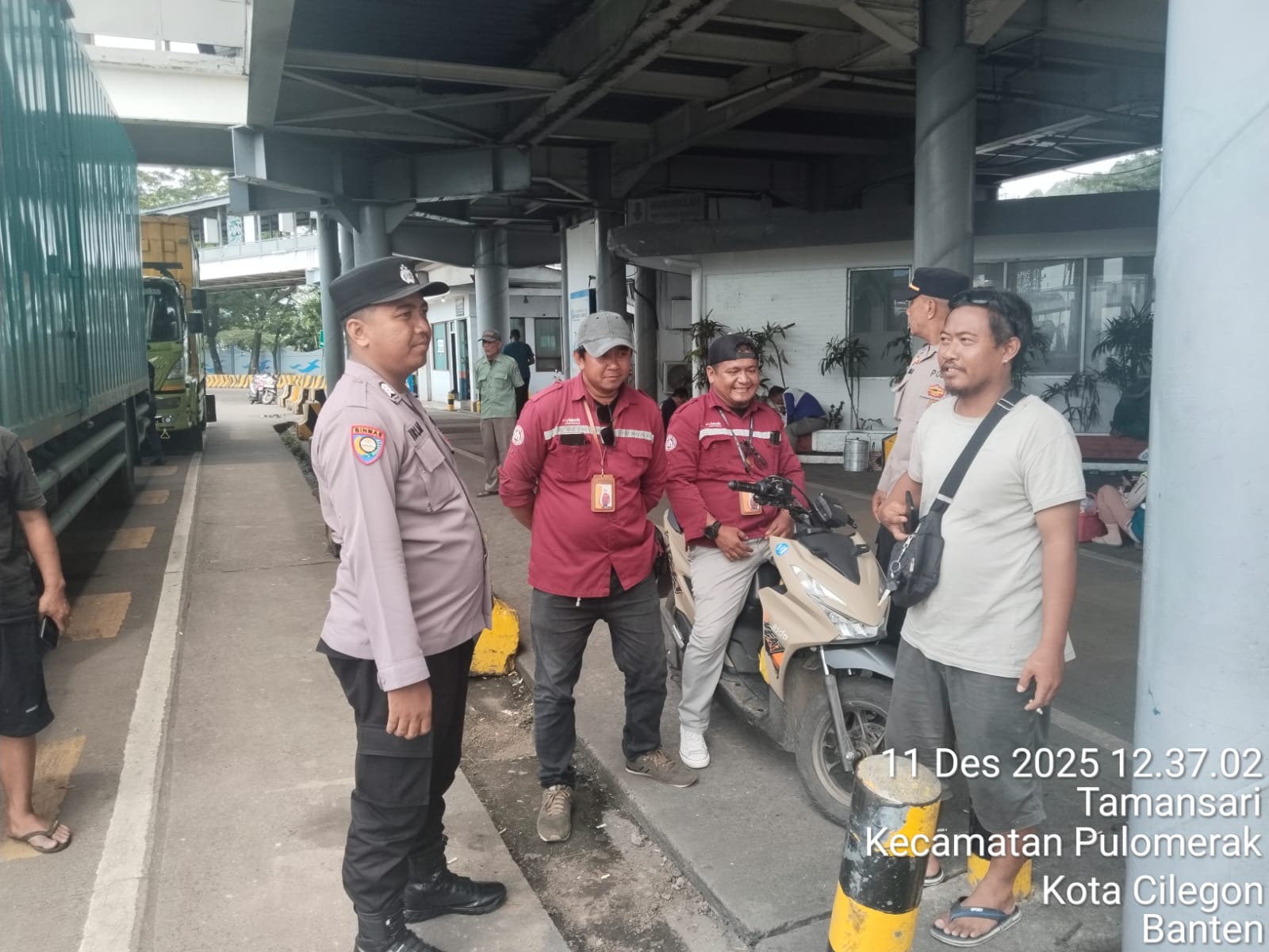 Cilegon - Personel Polsek Kskp Merak Polres Cilegon Polda Banten melaksanakan sambang dan patroli kawasan pelabuhan merak dalam rangka menjaga Harkamtibmas di Kawasan Pelabuhan Merak, Kamis (11/12/2025).