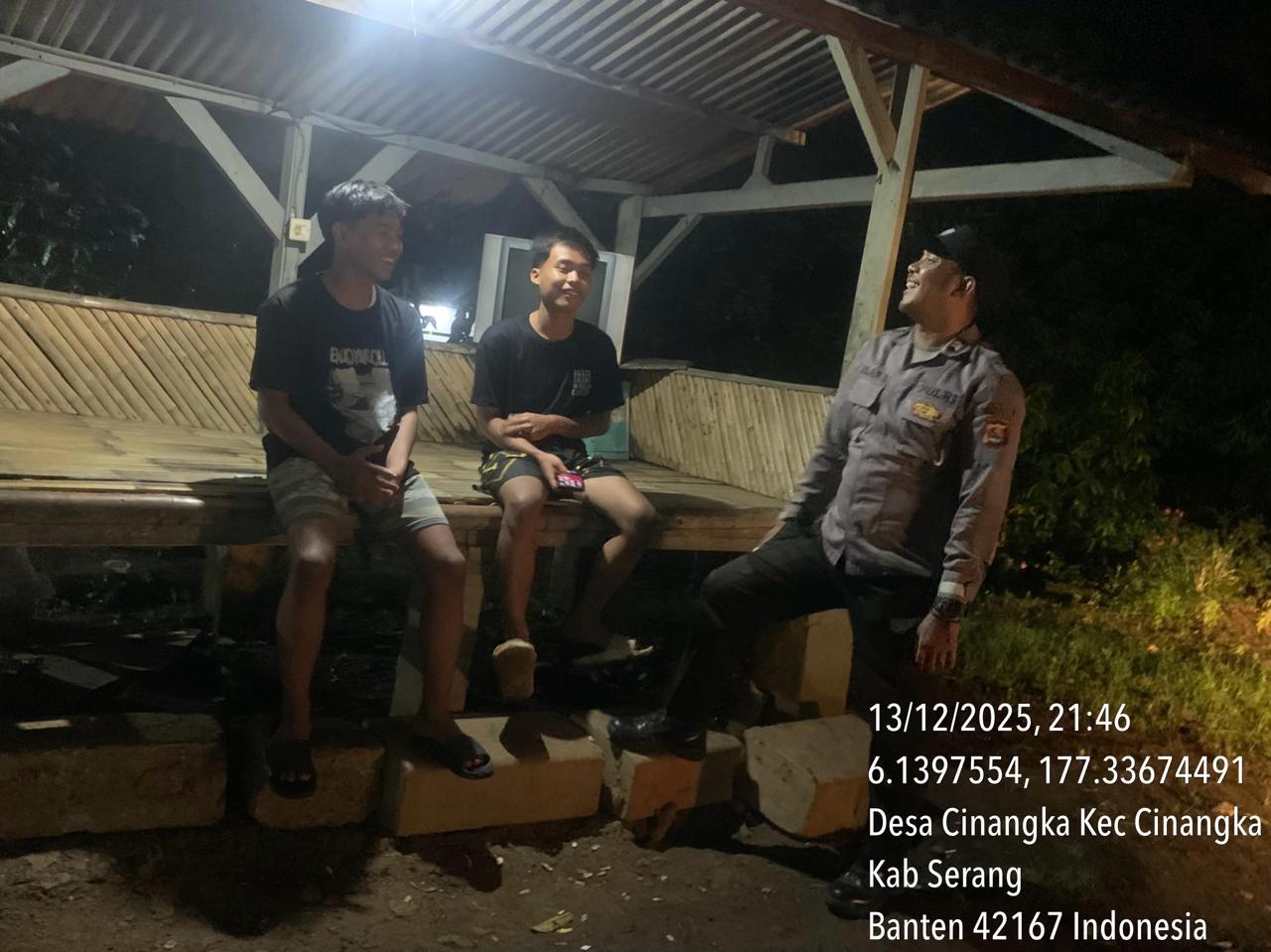 *Polres Cilegon* || Personil Bhabinkamtibmas Polsek Cinangka melaksanakan Program Komandan Wish Kapolda Banten RONDA SATKAMLING menyampaikan komunikasi dengan Petugas Siskamling agar berperan aktif dalam menciptakan Harkamtibmas yang aman dan Kondusif, Minggu (14/12/2025).