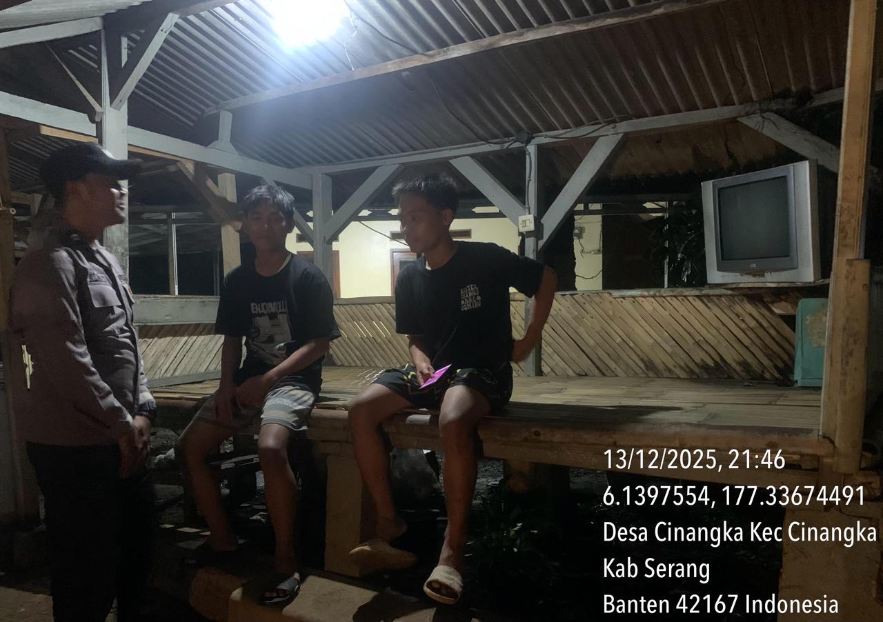 *Polres Cilegon* || Personil Bhabinkamtibmas Polsek Cinangka melaksanakan Program Komandan Wish Kapolda Banten RONDA SATKAMLING menyampaikan komunikasi dengan Petugas Siskamling agar berperan aktif dalam menciptakan Harkamtibmas yang aman dan Kondusif, Minggu (14/12/2025).