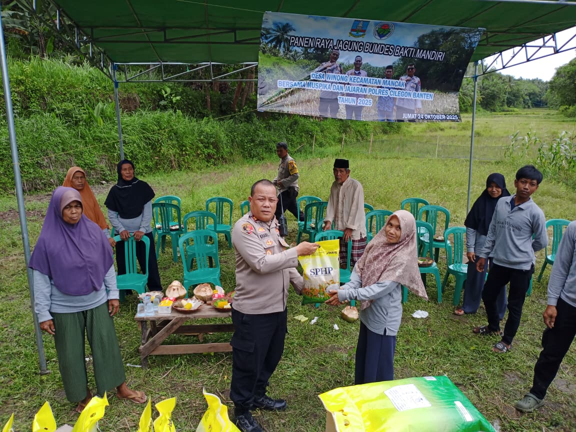 Kapolsek dan Bhabinkamtibmas Polsek Mancak Polres Cilegon Sambang dan Melaksanakan Kegiatan pendistribusian bantuan kepada warga kp. Lebak ciung desa winong kec. Mancak
