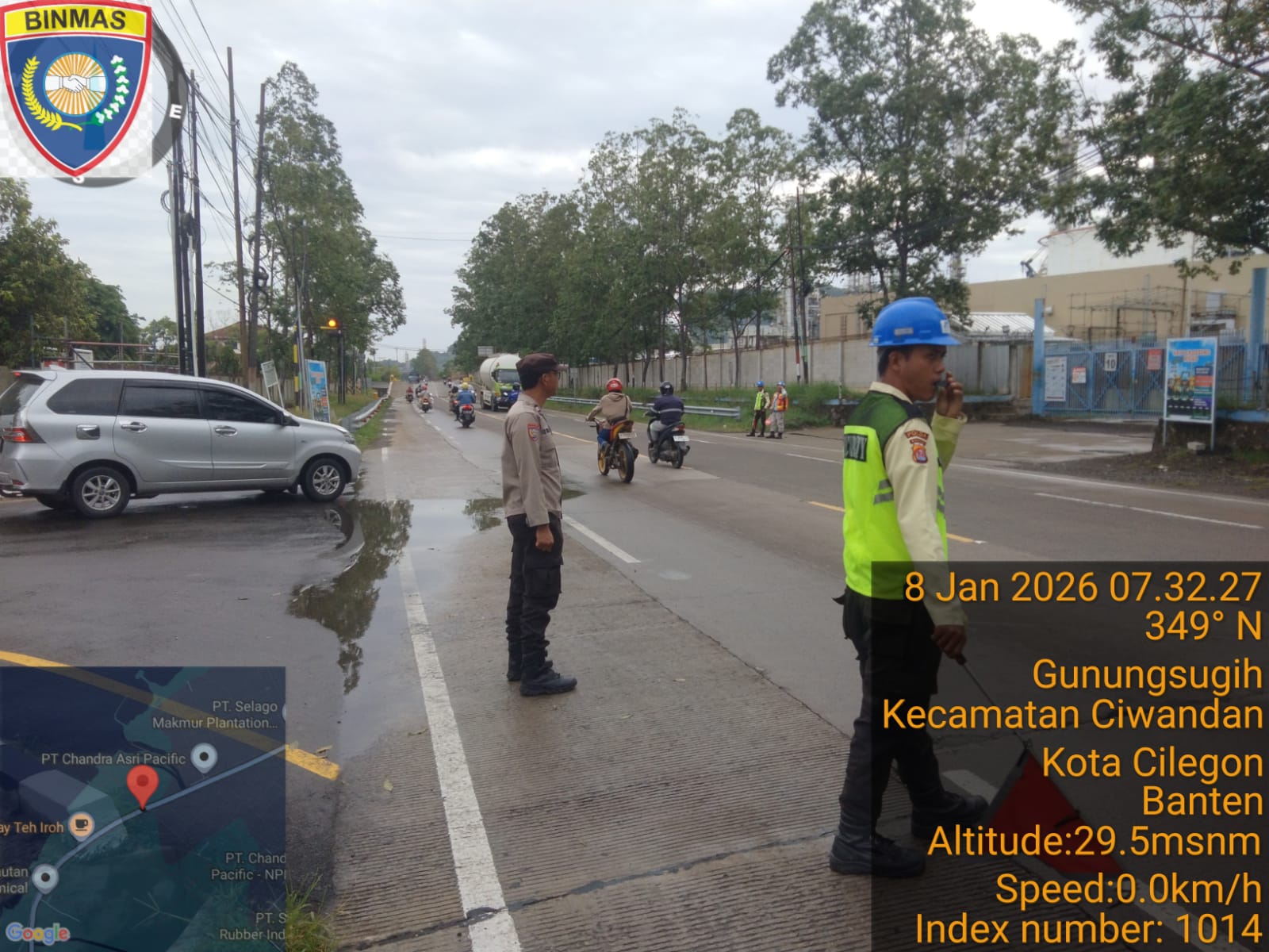 Cilegon - Tingginya mobilitas masyarakat pada jam-jam sibuk, tingkat kerawanan baik itu kemacetan ataupun kecelakaan pasti ada potensi, sehingga untuk mengantisipasi hal tersebut Personil Polsek Ciwandan Polres Cilegon Polda Banten Bhabinkamtibmas melaksanakan Strong Point pada sejumlah lokasi, Kamis (08/01/2026).