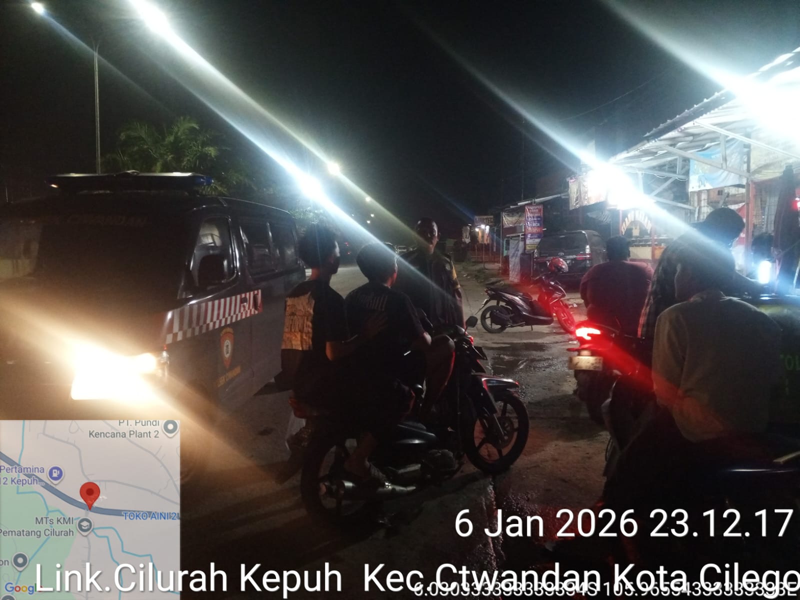 Dalam Hal ini Personil Polsek Ciwandan Polres Cilegon Polda Banten melakukan patroli malam menggunakan kendaraan patroli menyusuri jalur utama dan perumahan penduduk, sebagai langkah untuk mencegah gangguan keamanan yang beragam yaitu pencurian ternak (curnak), pencurian kendaraan bermotor (curanmor) maupun kejahatan lainnya.