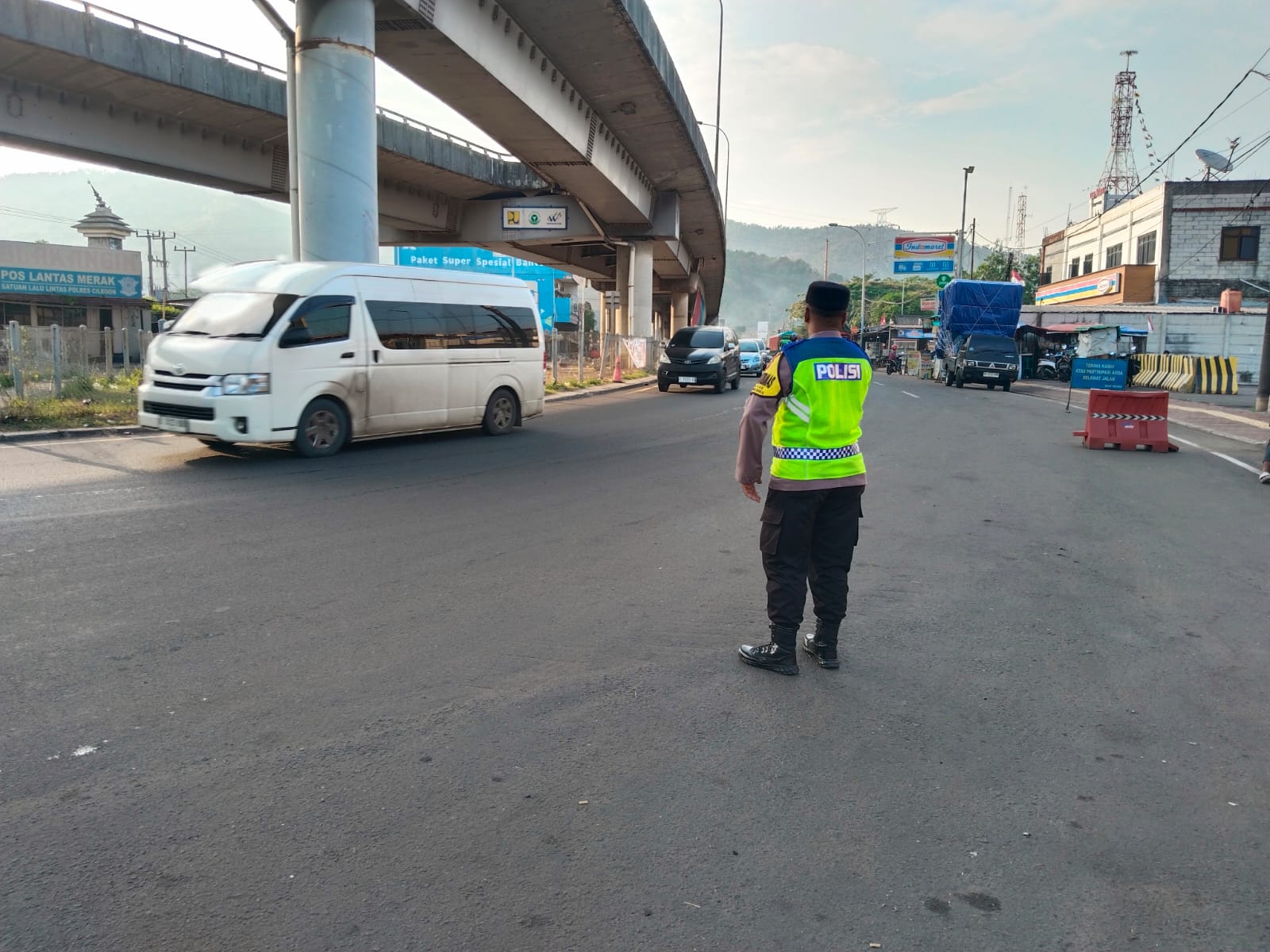 layang dan titik-titik rawan kemacetan. Personel Polsek Kskp Merak tampak aktif